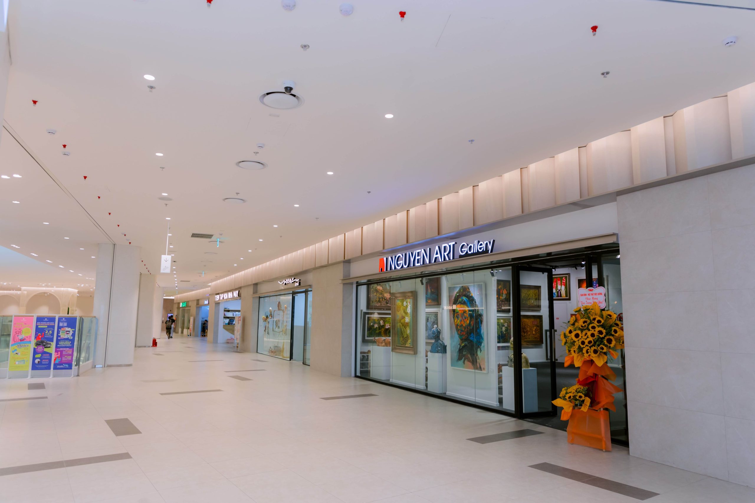 Tại đây, những bức tranh đương đại hòa quyện hài hòa với các tác phẩm décor thủ công, mỗi chi tiết đều được lựa chọn để tôn vinh chiều sâu sáng tạo của nghệ thuật Việt. Những ô cửa kính lớn mở ra nguồn ánh sáng tự nhiên dịu nhẹ, trong khi các chi tiết tinh tế — hương thơm nhẹ nhàng, lối đi rộng rãi và những góc nghỉ chân được bố trí khéo léo — mời gọi người xem nán lại lâu hơn.